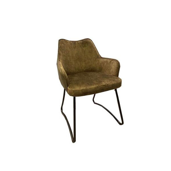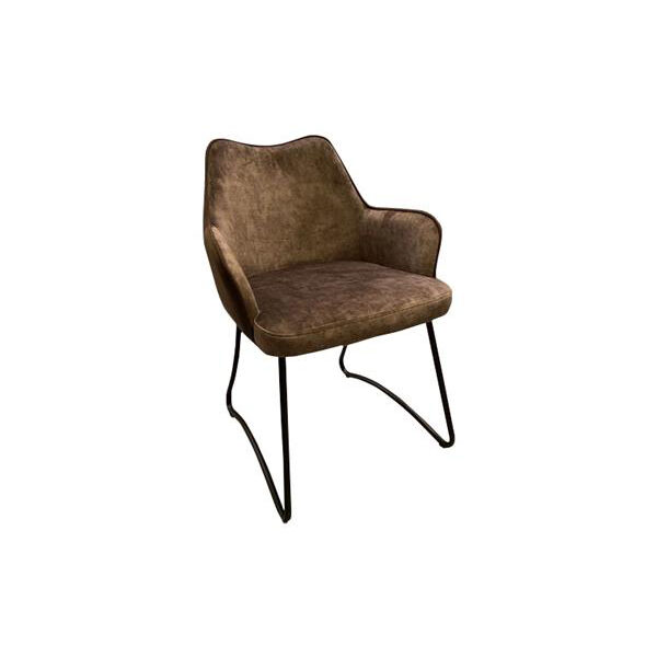 De stoel is bekleed met een zachte velvet stof en staat op een zwart gelakt metalen frame. Een mooie stoel voor aan de eettafel of als extra zitplek in de woonkamer als je gasten hebt.