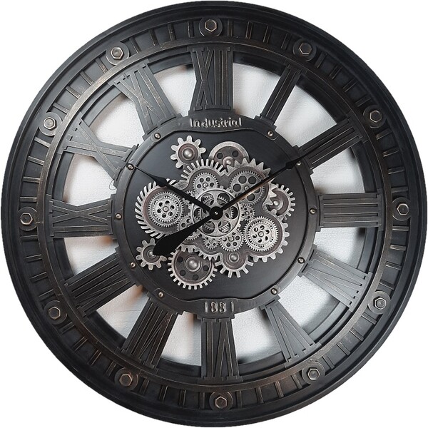 Met deze prachtige grote industriële wandklok van maar liefst 117 cm haal je een opvallende klok in huis. De wandklok is industrieel afgewerkt en is gemaakt van metaal. De wandklok heeft echt werkende tandwielen die zorgen voor een industrieel uiterlijk.