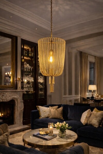 Deze stijlvolle lamp zorgt voor een luxe uitstraling in een grote ruimte. Verkrijgbaar in verschillende maten (zie foto's) en in de kleur: Zwart en Goud